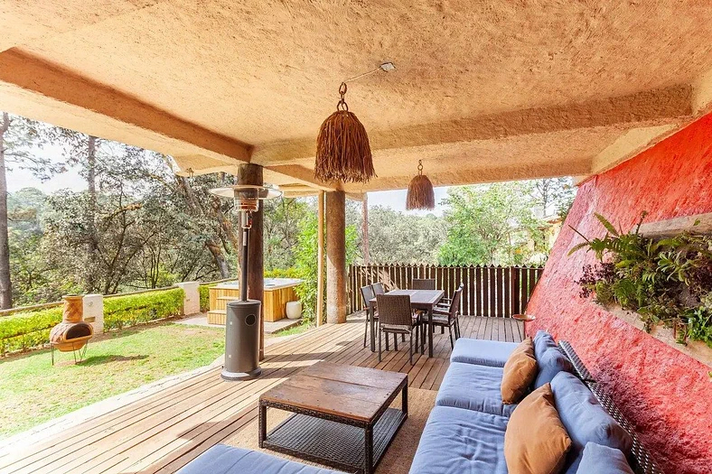 Para llegar desde el estacionamiento a la casa y de la casa a la terraza hay un camino corto pero bastante inclinado por lo cual puede resultar difícil para las personas mayores o con alguna lesión. Si quieres usar el jacuzzi, por favor avísame antes de llegar. Tiene un costo extra de 1,400 pesos por toda tu estancia ya que usa mucha energía. Puedes comprar la leña directamente de Juan así lo requieres . Puede tomar hasta 6 horas calentar el agua del jacuzzi solo para que lo tomen en cuenta . La leña para la chimenea no viene incluida Puedes comprar la leña directamente de Juan si lo deseas. Contamos con un calentador para jardín el cual requiere un tanque de gas con un costo de 600 pesos y hay que solicitarlo con anticipación para su instalación Por favor, toma en cuenta que estas en el medio del bosque. Hay humedad y durante la época de lluvia es posible que se vaya la luz o que el wifi no funcione ya que las fuertes lluvias y el viento a veces tumban los árboles que se caen encima de los cables. Aunque siempre trato de resolver cualquier situación lo más rápido posible, los caprichos de la naturaleza y la respuesta de la CFE o Telcel están fuera de mi control. Si tienes cualquier problema, por favor háblame. La comunicación asegura tu felicidad como huésped y mi buen servicio como host.