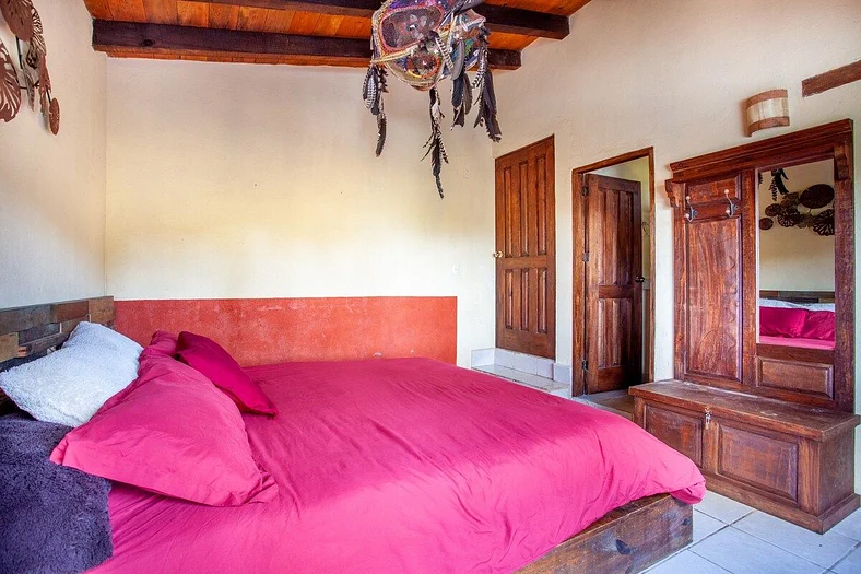Vas estar suficientemente cerca de Avándaro y Valle de Bravo para disfrutar las tiendas, los restaurantes, y el lago, pero suficientemente lejos para evitar el tráfico y las multitudes de gente. Es una perfecta minivacación fuera de la ciudad donde puedes pasar el tiempo de calidad con tus amigos, tu pareja o tu familia aprovechando la naturaleza. Abajo puedes encontrar alguna idea de las distancias a lugares de interés. Para mas detalle, por favor mira la Guia de Ciudad adjunta a este anuncio. Avándaro está a 7 min Valle de Bravo está a 20 min Velo de Novia (la cascada) está a 5 min La Gran Stupa está a 25 min Monte Alto está a 15 min